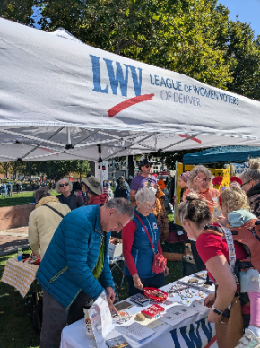 What an amazing day! Leaguers united with so many like-minded organizations and people at the No Kings rally at the Capitol. We set-up our tent and talked with people from 11:00 a.m. to 4:00 p.m.  So many asked how they could join us!  We had Leaguers from Denver, other counties and states stop by to say hello.  We gave away lots of Ballot Issues booklets, provided sign-making supplies (thanks to Beth Hendrix and LWVCO) and gave away tons of buttons. A hopeful and joyful day!